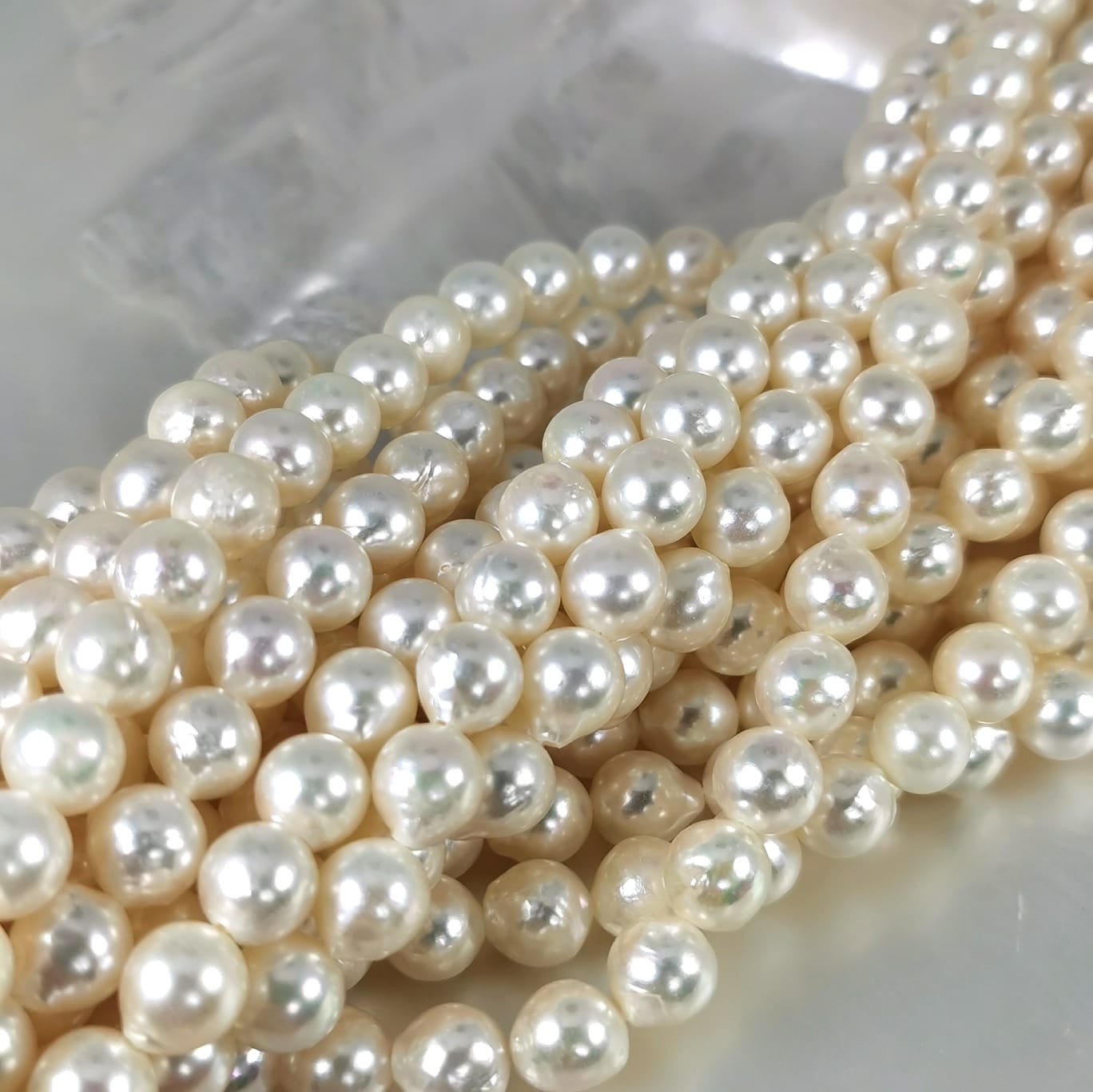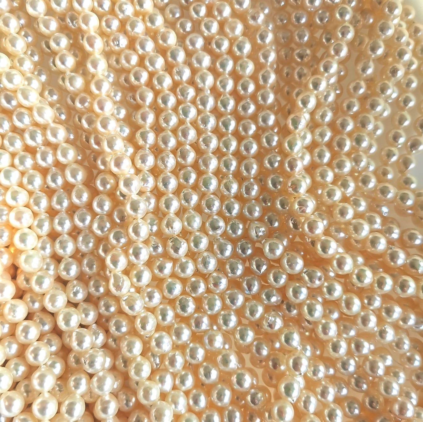 Long - Perles de culture Akoya en rang - perles formes baroques à presque rondes