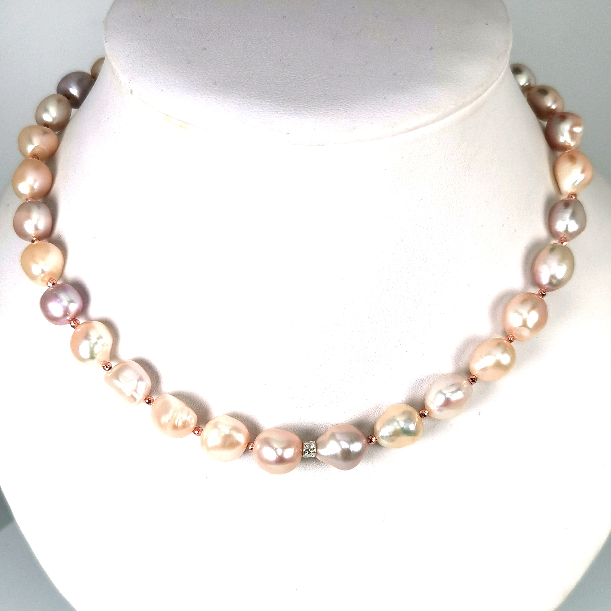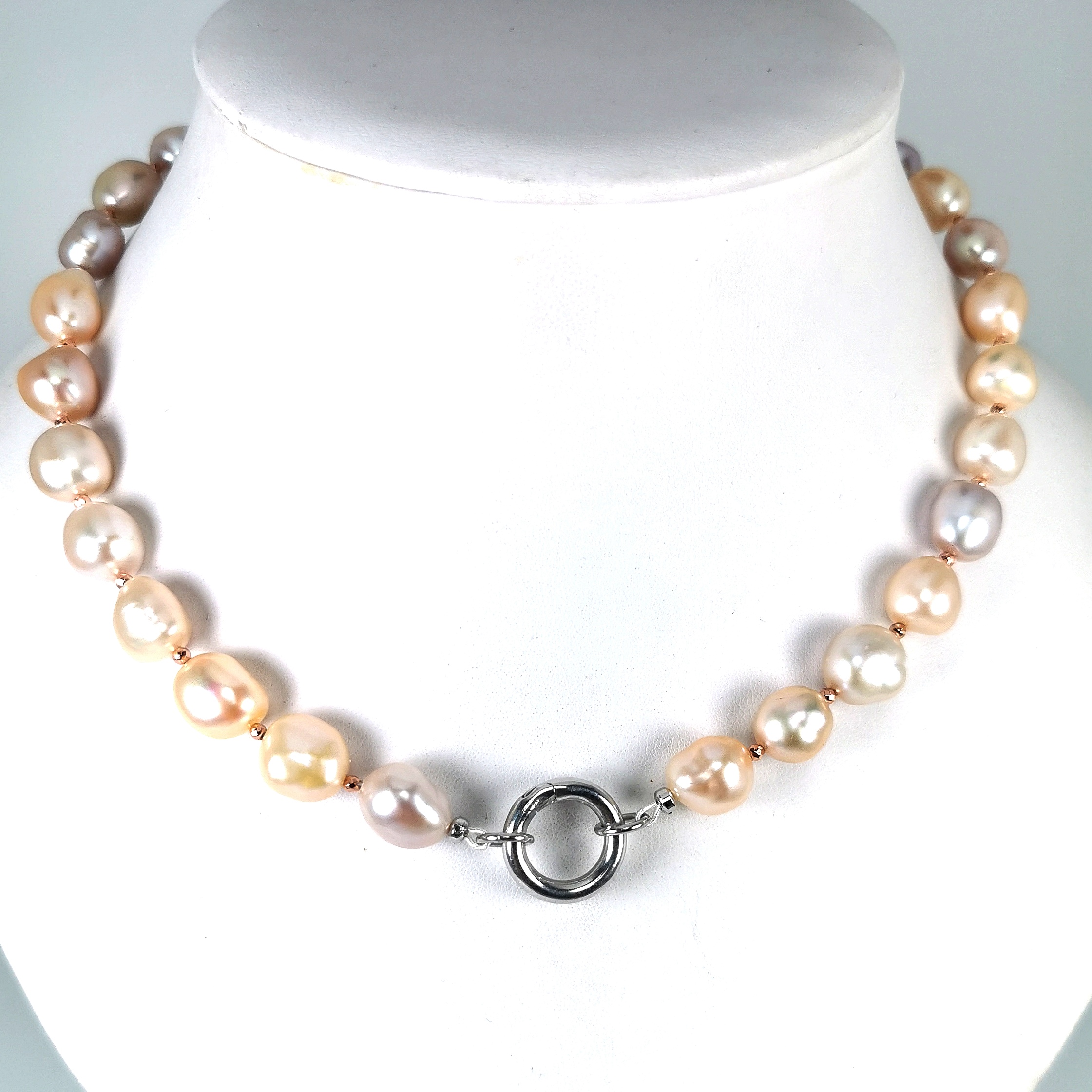 Court – Fwp collier perles de culture baroques multicolores – couleurs naturelles – avec fermoir Ag925 détachable