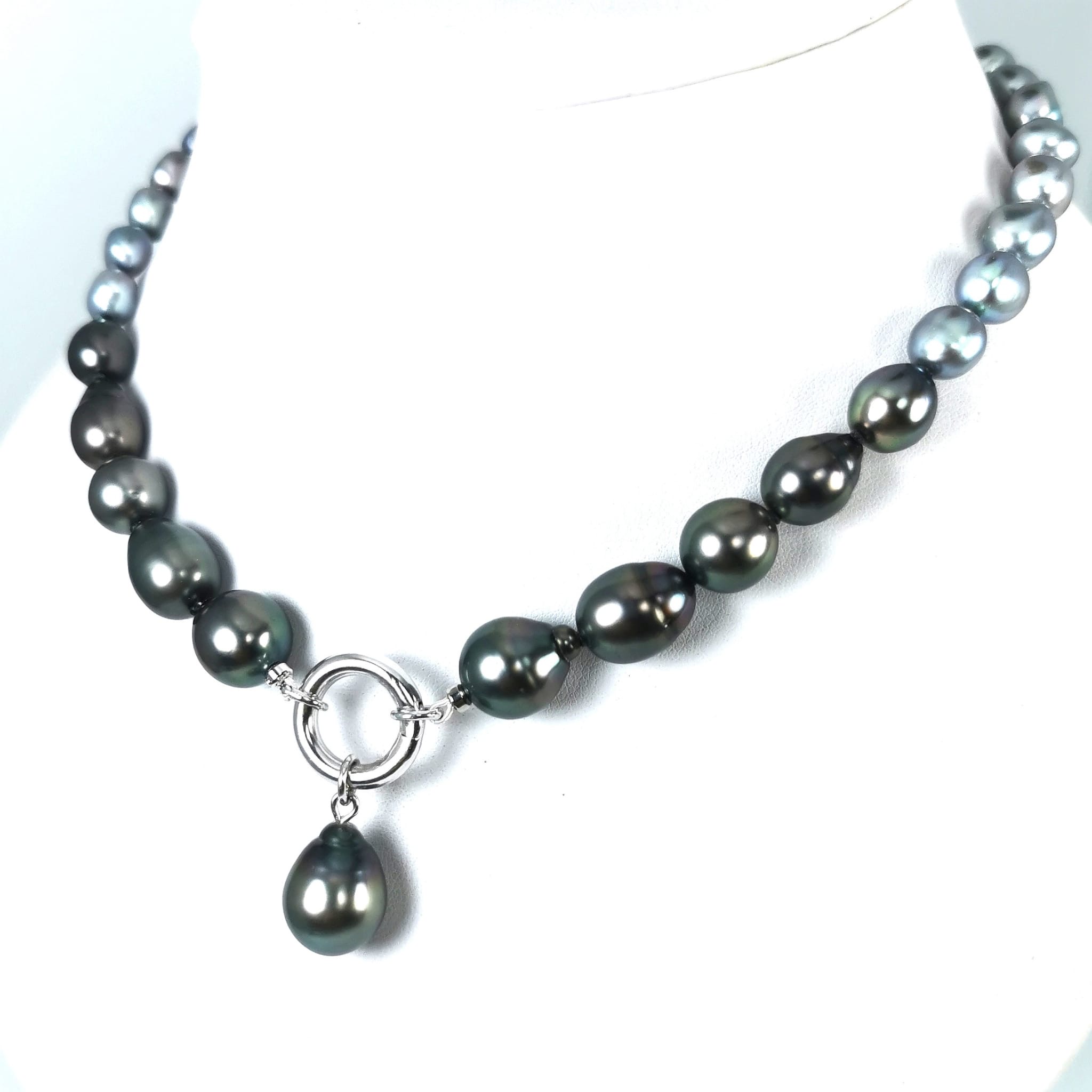 Perles de culture de Tahiti et Eau douce baroques Ø 8 x 11,7 mm – 39 perles – 40 cm – pendentif détachable.