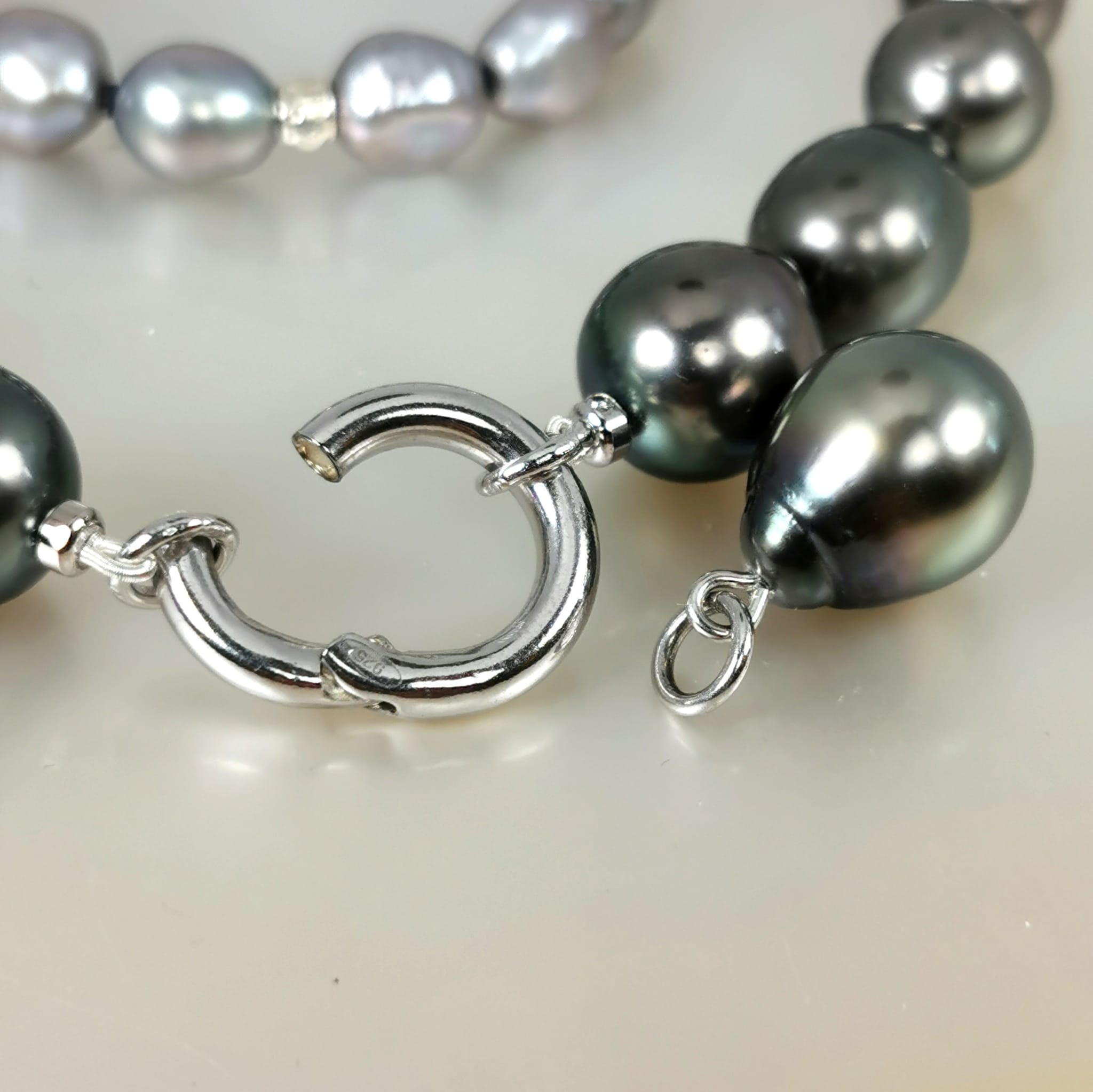 Long - Collier en perles de culture de Tahiti et Freshwater forme baroque - 40 CM - avec fermoir Ag925